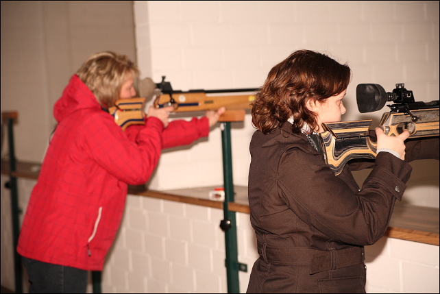 Nach einigen organisatorischen Vorbereitungen trafen sich so am 25.11.2009 gleich 14 Frauen zum Schießabend in der Schützenburg und alle waren begeistert.